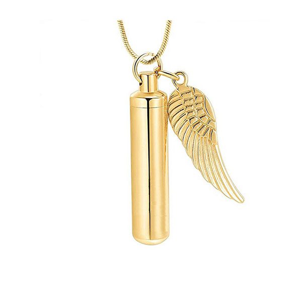 Our Angel Wing Urn Pendant can be worn as a pendant or used as a keychain which is a special way to hold a bit of your pet’s cremains. This pendant/keychain is made of stainless steel. The cylinder portion is design to hold ashes. The top unscrews and opens wide for easy placement of cremains. Please Note: Chain not included. We recommend sealing the compartment closed after placing in the pet’s remains with clear super glue.