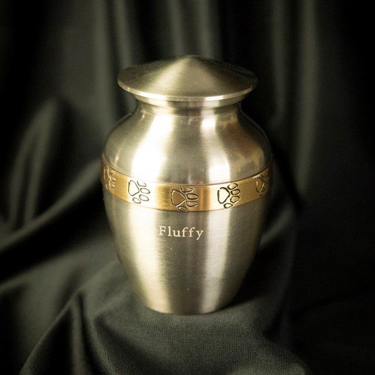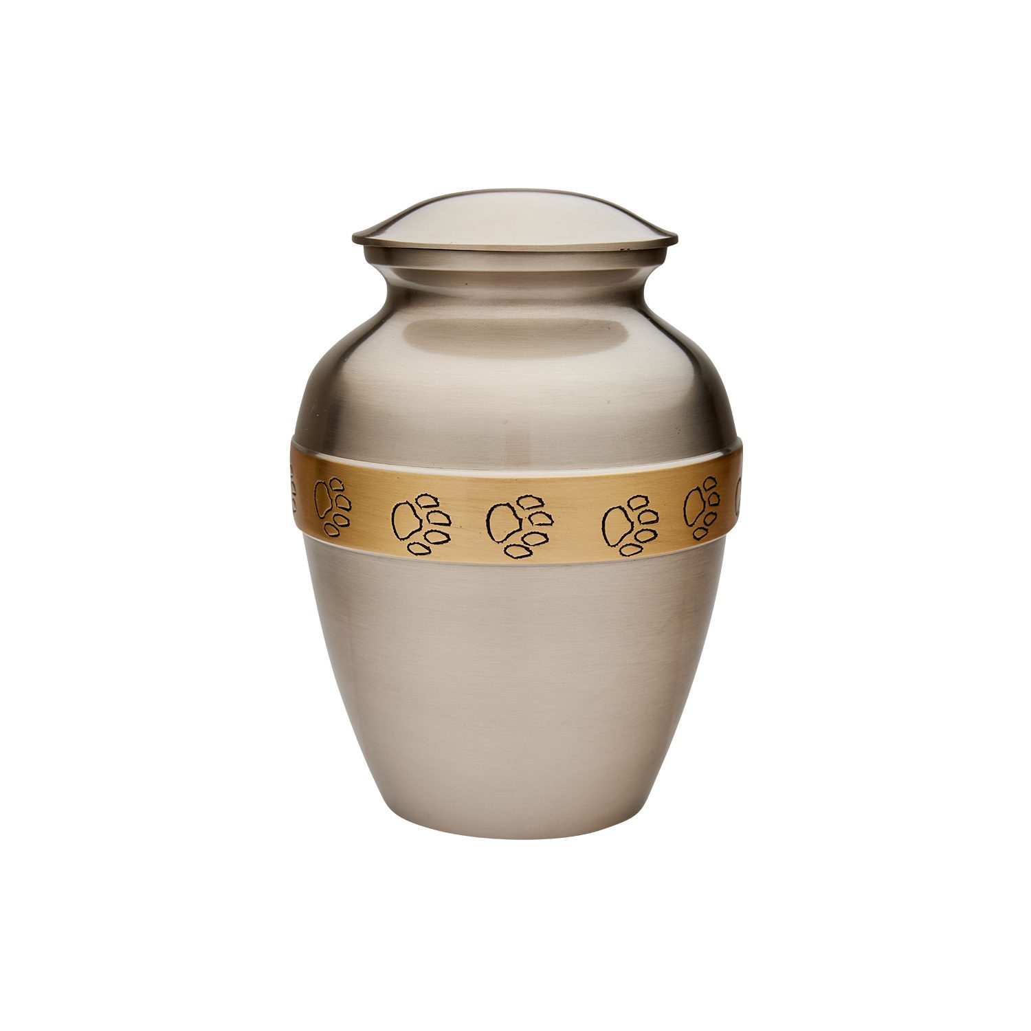 Made of solid brass this artfully designed pet urn is truly unique in style and color. Add an engraving and not only will it personalize your friends urn but it will enhance the beauty of this urn as the engrave letters shine through like gold. This urn is the 2nd of three in the “Friendship Series” designed and manufactured exclusively by Pet Passages. The Friendship Series is designed as a simple but elegant memorial urn to honor the friendship of your wonderful family friend. Hand forged and carved by old-world artisans, each urn comes with a precisely threaded screw-on top to provide an easy way to secure your pet’s ashes.