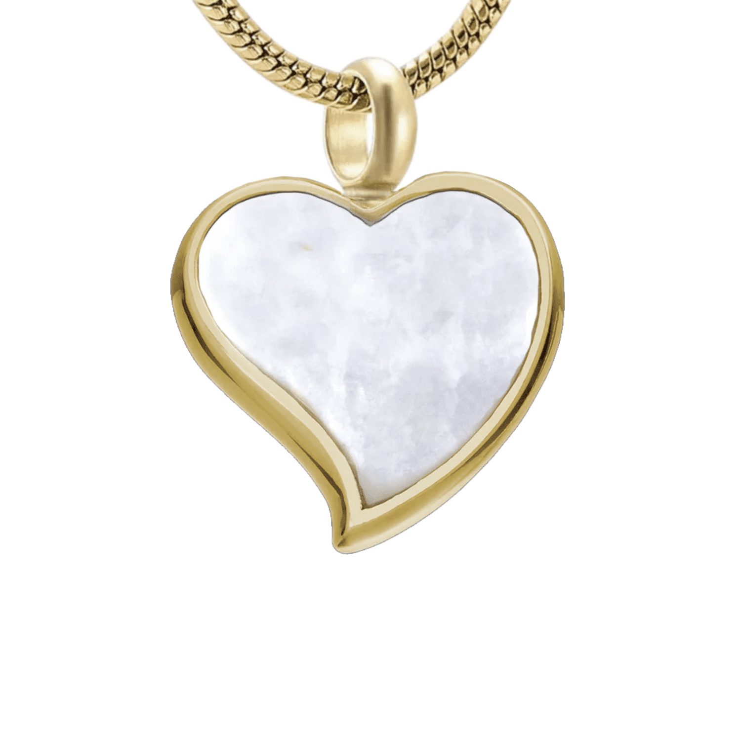 Keepsake pet jewelry is designed to keep the memory of your pet close to you by holding a small portion of your pet’s cremated remains. This graceful features a sleek mother of pearl surface. The Gold Tone Heart Pendant is made of high quality gold tone stainless steel. Unscrew the bail to reveal a secret space for holding your pet’s ashes close. Please Note: No chain included. We recommend sealing the compartment closed after placing in the pet’s remains with clear super glue.