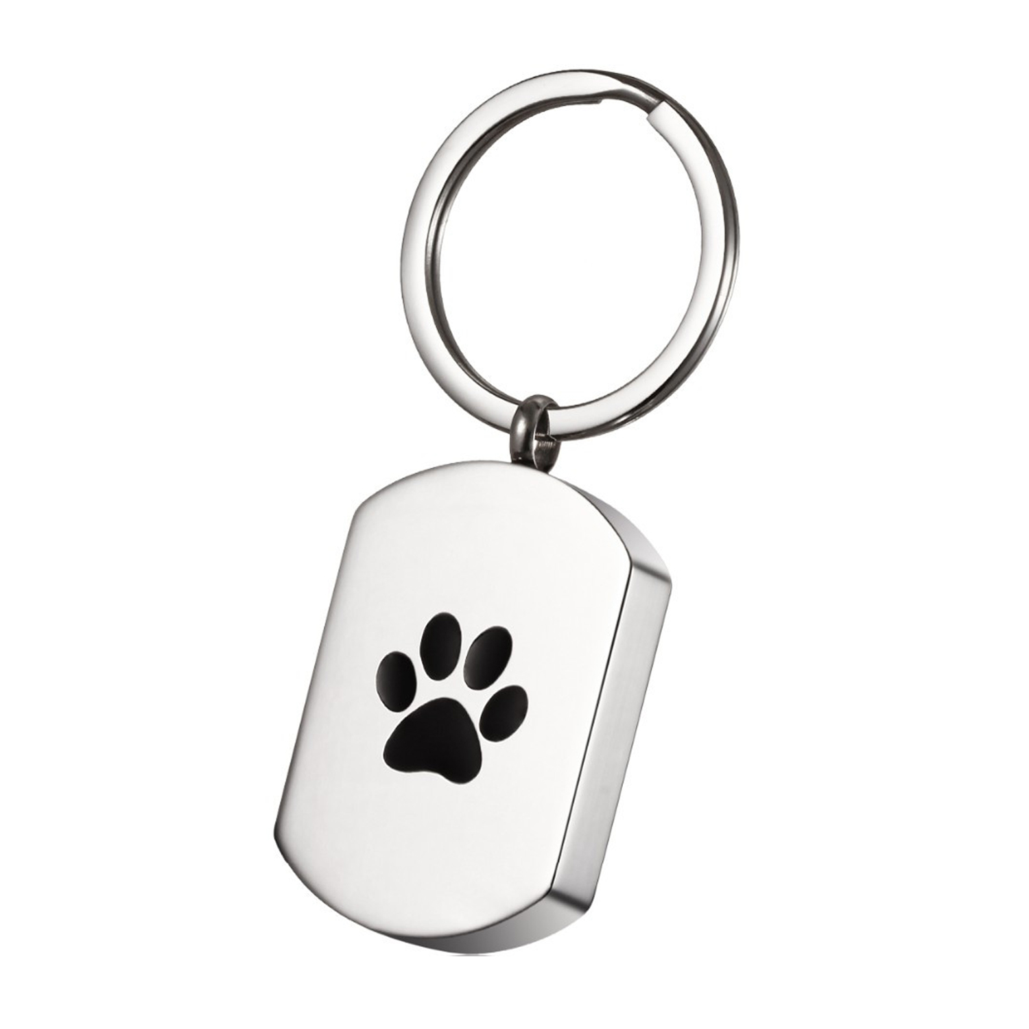 Adorned with a paw print this handsome key chain is made of 316 stainless steel that is polished to a high gloss. Cremated remains can be placed inside by unscrewing the bail. A rubber o-ring is included on the bail to provide a waterproof seal. We recommend a little super glue on the threads just for extra security. A key chain cremation keepsake is a unique charm or the perfect key fob filled with a small secret that is with you all the time. As a keepsake urn, many families divide their pet’s ashes among different family members and purchase multiple keepsakes. We recommend sealing the compartment closed after placing in the pet’s remains with clear super glue.