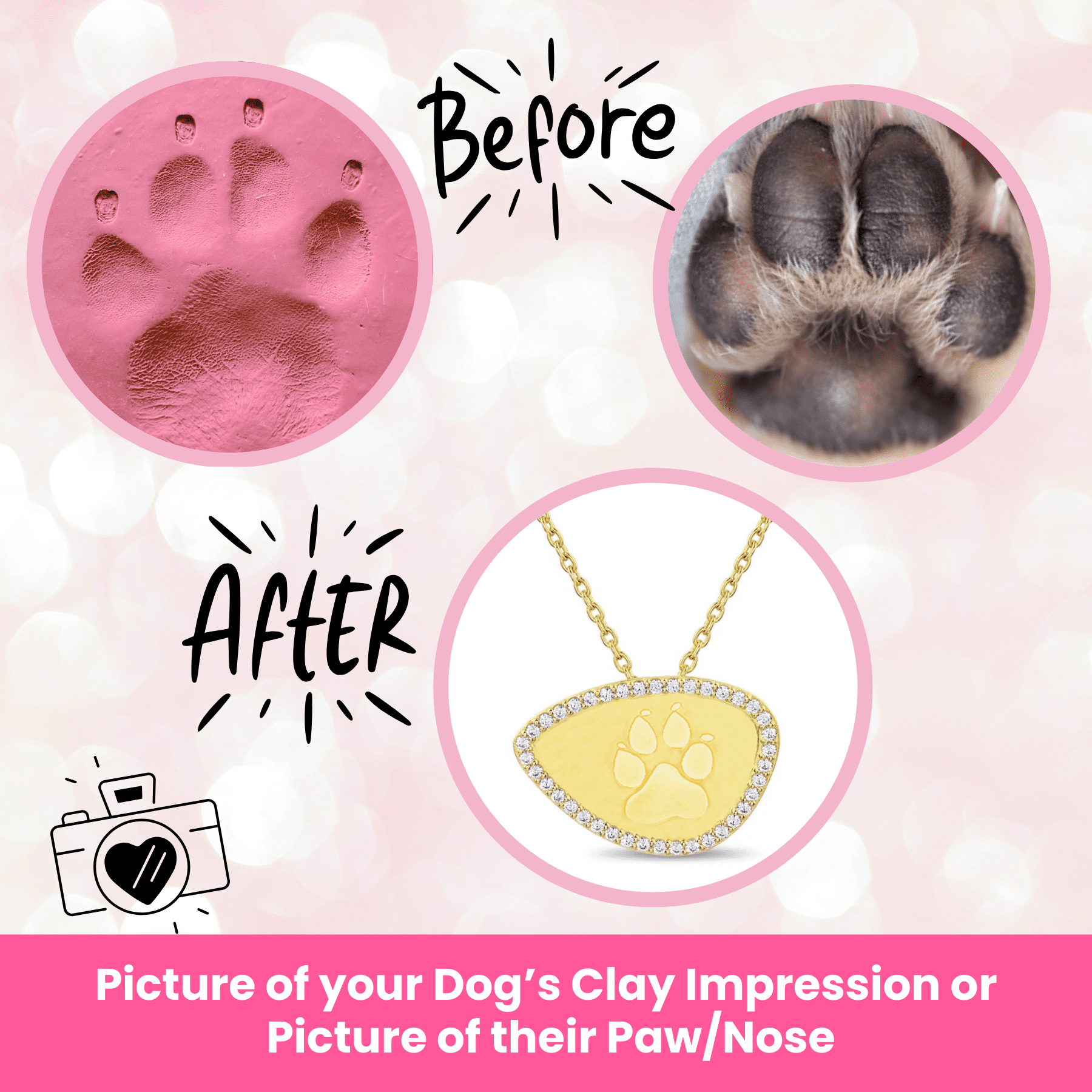 The Petal Paw Print/Nose Print Necklace, a heartwarming tribute for pet moms who treasure the paw prints and nose boops of their beloved furry companions. This enchanting piece of jewelry is designed to hold the essence of your fur baby close, creating a tangible link to the paw prints and nose that brighten your days.