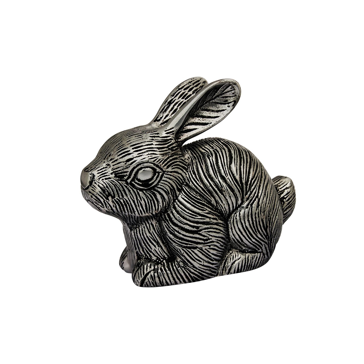 Commemorate your rabbit with a Pet Passages Rabbit Cremation Urn. Provides a peaceful resting place to express your love and sorrow. The finely detailed rabbit cute as a button. Nickel in color the urn will serve as a touching tribute to honor your beloved rabbit. The opening of the urn is located on the bottom and is held securely in place with three screws. The bottom also has three rubber pads to protect against damaging the surface the urn may sit on.