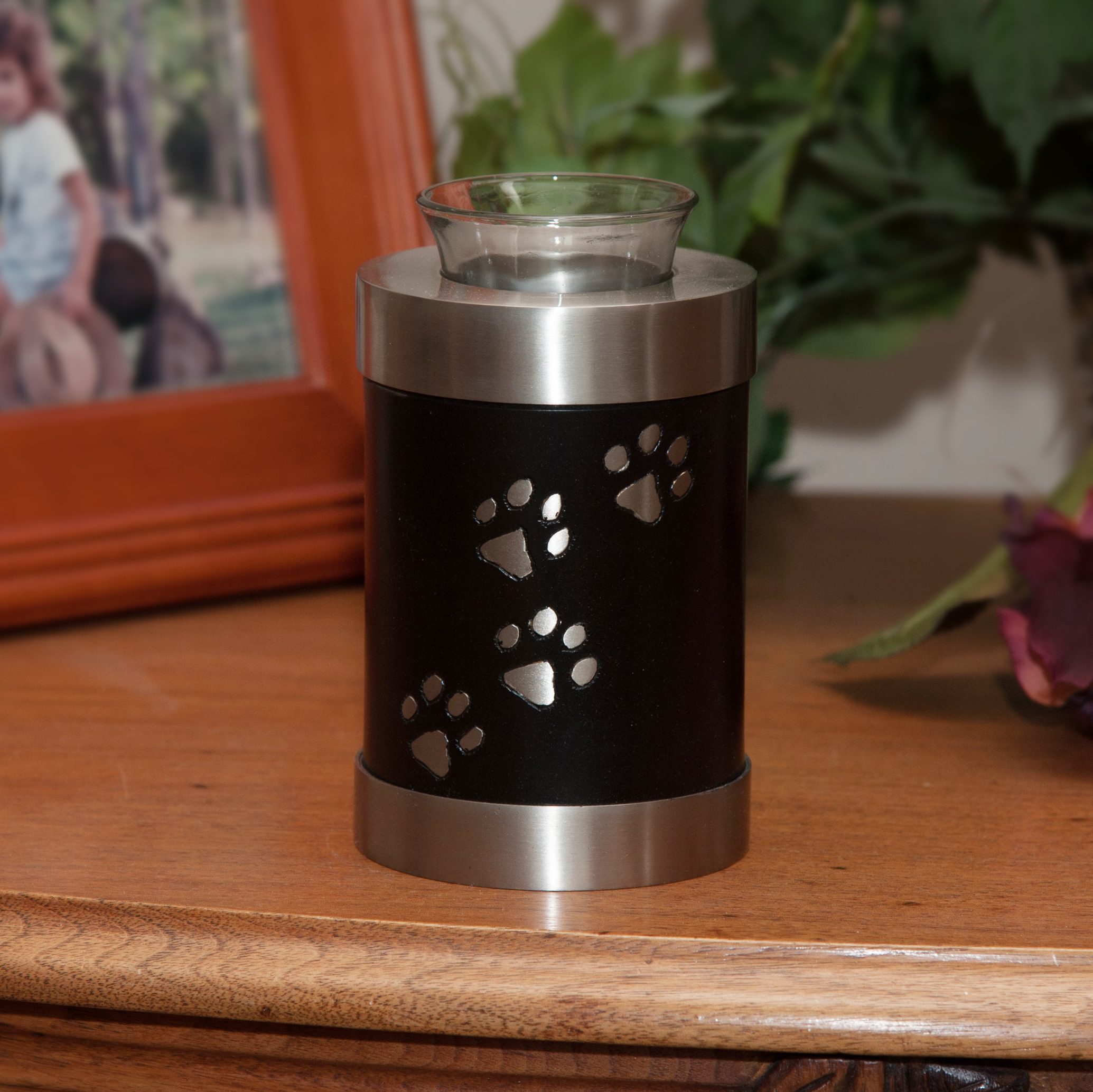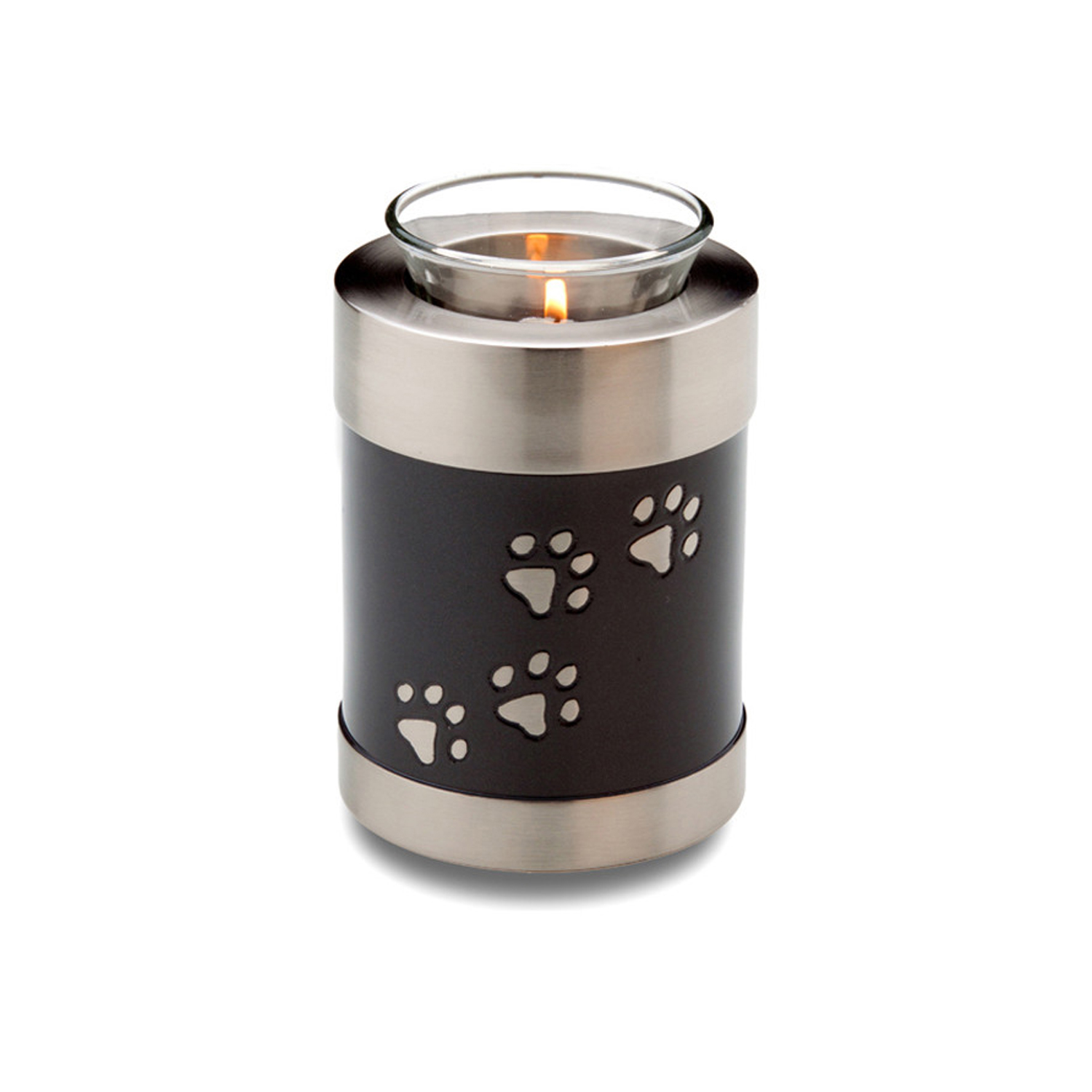 Made of solid brass with paw prints the Tea Light Urn can hold a small amount of ashes and is often used to as a keepsake urn. Keepsake urns are used to hold a small portion of ashes while the majority of the ashes are scattered or buried.