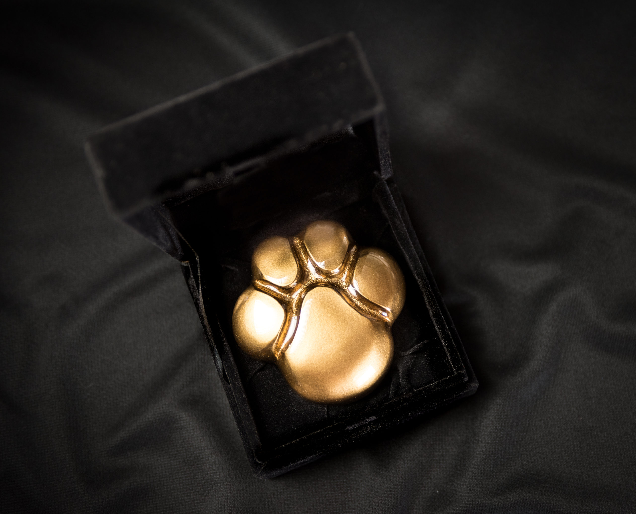 Treasured Paw keepsake cremation urn is a traditional way to keep a small portion of your beloved pet close to your heart. This high gloss aluminum urn has a bottom-opening screw in plug to easily insert cremated remains. Come in a handsome black velvet presentation box.